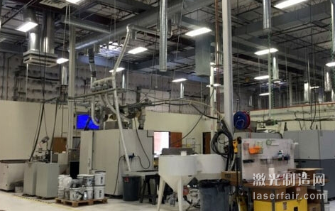 看完了塑料材料增材制造區(qū),下一個(gè)是金屬制造工作區(qū)域。在這個(gè)區(qū)域里,我們看到了14臺(tái)直接金屬激光燒結(jié)(DLMS)設(shè)備。每臺(tái)機(jī)器的玻璃窗都被遮擋住了,以免我們看到里面正在打印的東西。不過Stratasys公司還是好心地專門留出一臺(tái)機(jī)器打印各種樣品,以滿足我們的好奇心。