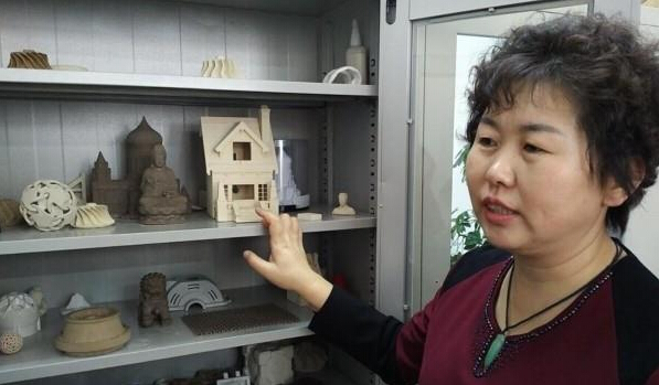 在郭艷玲的實(shí)驗(yàn)室,一臺(tái)3D打印機(jī)正在工作。一名女生不斷將粉末倒進(jìn)機(jī)器,機(jī)器將粉末均勻刮開(kāi),一名男生在屏幕上輸入程序,十幾分鐘,一個(gè)木質(zhì)硬塊就被打印出來(lái)。用紅木粉末打印紅木壁畫(huà),用玉石粉末打印工藝品,用麥飯石打印杯子,用石墨打印工業(yè)器件,用陶泥打印雕塑,如今這些都已能做到。未來(lái),她還要利用廢棄物打家具、裝飾裝修材料。