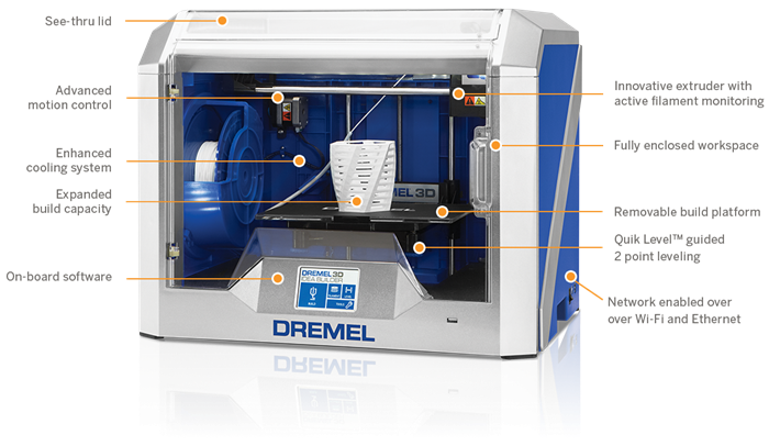 Dremel公司在2014年初就推出了其第一代3D打印機(jī)產(chǎn)品Idea Builder,這也是第一個(gè)進(jìn)入3D打印機(jī)市場的知名制造品牌。Idea Builder最初的目標(biāo)用戶是業(yè)余愛好者和教師,因此該產(chǎn)品更加重視其易用性。最初的想法生成器針對休閑愛好者和教育工作者提供便于設(shè)置和使用的重點(diǎn)。新推出的Idea Builder 3D40在延續(xù)這一傳統(tǒng)的同時(shí)又加入了一些高級(jí)功能。