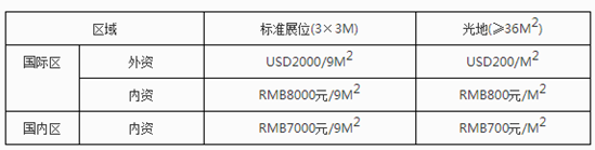 注:標(biāo)準(zhǔn)展位(3M×3M):公司楣板、地毯、兩只射燈、一桌兩椅、一個220V插座。