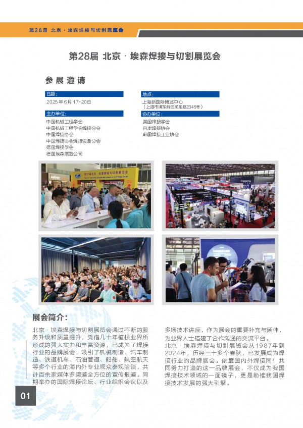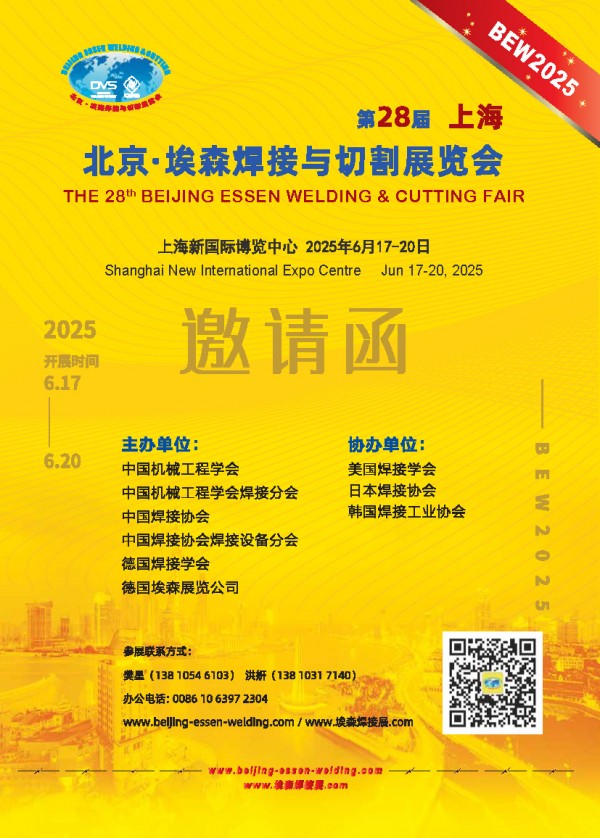- 主辦單位:中國機械工程學會 中國機械工程學會焊接分會 中國焊接協(xié)會 中國焊接協(xié)會焊接設備分會 德國焊接學會 德國埃森展覽公司