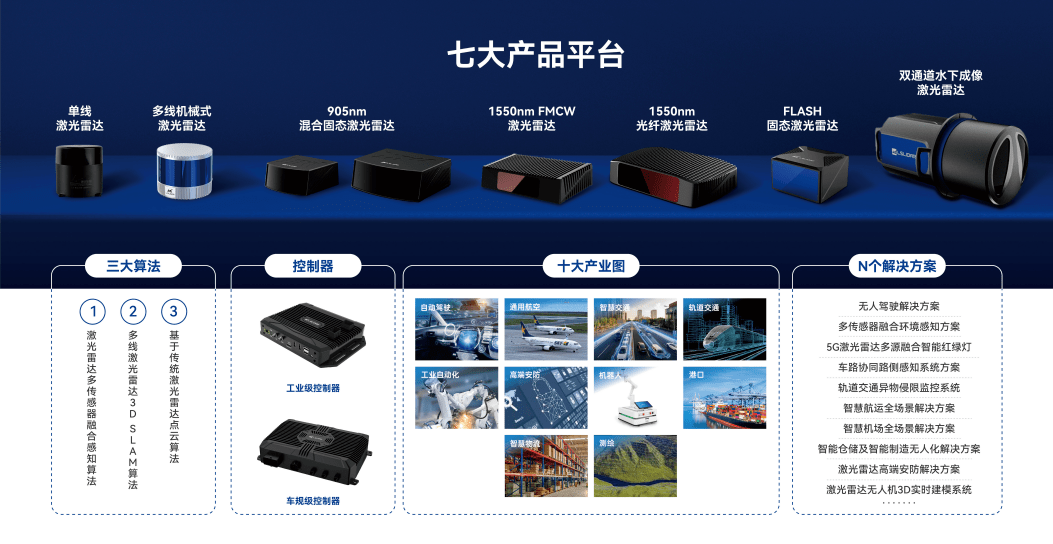 “我們公司的定位就是要‘軟硬結(jié)合’,持續(xù)走智能傳感器硬件加軟件算法系統(tǒng)及應(yīng)用解決方案、全測量原理、全技術(shù)路線、全應(yīng)用場景的覆蓋、全產(chǎn)業(yè)鏈深度集成這條路。目前,我們能向客戶提供十大應(yīng)用場景解決方案,分別是自動駕駛、智慧交通、軌道交通、通用航空、機(jī)器人、智慧物流、高端安防、港口、測繪及工業(yè)自動化。”胡小波介紹道。