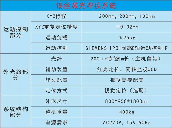 ◇  系統(tǒng)采用半導體激光器,峰值功率低,滿足錫焊等低熔點釬料焊接要求;