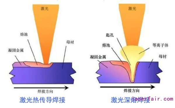 熱傳導(dǎo)焊接和深熔焊的主要區(qū)別在于單位時(shí)間內(nèi)施加在金屬表面的功率密度,不同金屬下臨界值不同。