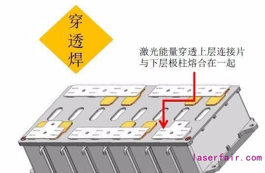 穿透焊,連接片無需沖孔,加工相對簡單。穿透焊需要功率較大的激光焊機(jī)。穿透焊的熔深比縫焊的熔深要低,可靠性相對差點(diǎn)。