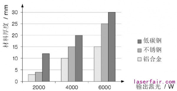 激光功率應(yīng)和加工類型、材料種類和厚度相匹配。功率必須足夠高以至于工件上的功率密度超出加工閾值。