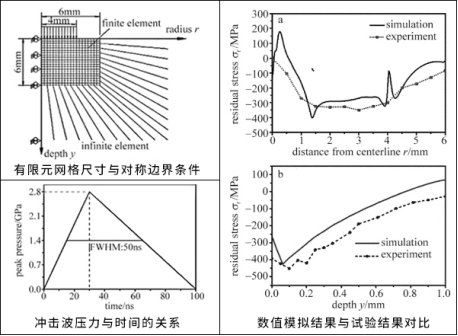 數(shù)值模擬有助于獲得特定應(yīng)用場合最優(yōu)的工藝參量,已逐漸成為研究激光沖擊強(qiáng)化的重要手段。國內(nèi)外學(xué)者針對激光沖擊強(qiáng)化的建模及其優(yōu)化做了大量的研究工作。目前業(yè)界在顯式動(dòng)態(tài)分析+隱式靜態(tài)分析激光沖擊強(qiáng)化數(shù)值模擬法,以及基于本征應(yīng)變的激光沖擊強(qiáng)化數(shù)值模擬法等方面都取得了長足進(jìn)展。
