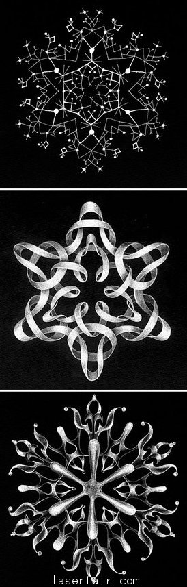 據(jù)悉,此次的創(chuàng)意是一位來自紐約薩克斯第五大道的commissioned Marian Bantjes公司,早在2008年圣誕節(jié),該公司就繪制了25種不同形狀的精美雪花,之后已委托不同的珠寶商把這些圖紙變成美麗的珠寶,而到了今年,這些創(chuàng)意又被3D打印進行了完美詮釋。