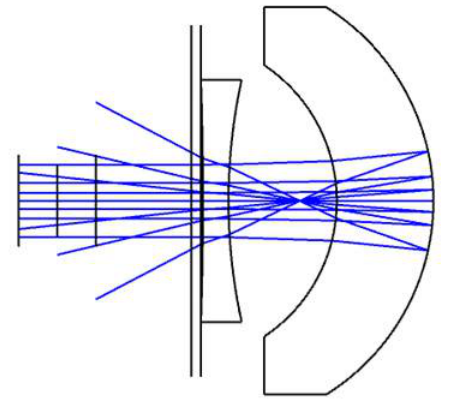 綜上在設(shè)計(jì)F-theta平場掃描鏡時要仔細(xì)排查每個鏡片表面的后反射點(diǎn),通過改變鏡片的曲率半徑盡量消除后反射點(diǎn)的不利影響。