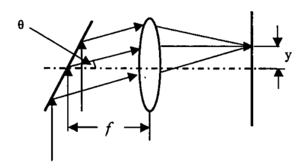 式中θ、f、y分別表示F-Theta鏡頭的視場角、焦距和像高。表示當(dāng)F-Theta焦距一定時,像高y與視場角θ成正比,滿足線性關(guān)系。