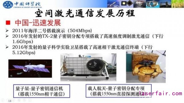 歐洲和日本最早在光通信領(lǐng)域取得了成功。據(jù)說美國發(fā)射的第一顆衛(wèi)星,沒有捕獲,被歐洲、日本搶了先。美國這個(gè)項(xiàng)目壞掉了,就馬上去做別的事,到2013年,美國在月球上,利用激光通信,把一段視頻從月球傳到了地球,這段視頻的激光發(fā)射終端口徑只有10厘米,傳輸速率達(dá)到了622M。