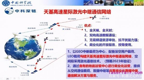 最近我們國家對于空間近地組網(wǎng)的計(jì)劃非常多??萍紕?chuàng)新2030用了激光通信的手段,計(jì)劃2022年示范驗(yàn)證,中國的航天科工、科技,都在做激光通信。值得關(guān)注的是,激光通信的商業(yè)價(jià)值已經(jīng)被看到,有專門的企業(yè)研究在天上能不能進(jìn)行商業(yè)化的數(shù)據(jù)傳送。中科深鏈準(zhǔn)備用商業(yè)化的方法,做幾顆高軌的衛(wèi)星,作為基站,然后把月球作為一個(gè)基點(diǎn),連接數(shù)據(jù),再通過一些小衛(wèi)星,作為低軌的空間中轉(zhuǎn),建立起一個(gè)以中繼載荷為中心,配備深空、高軌和低軌小衛(wèi)星構(gòu)建天地中繼激光的通信網(wǎng)絡(luò),結(jié)合自有的地面運(yùn)管和商業(yè)化運(yùn)行,為空間數(shù)據(jù)傳輸提供服務(wù)。這套系統(tǒng)具備全天候、全天時(shí),雙向高速數(shù)據(jù)通信、無需頻譜資源審批、抗干擾能力強(qiáng),商業(yè)化的開放服務(wù),按需使用的特點(diǎn)。