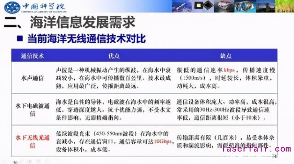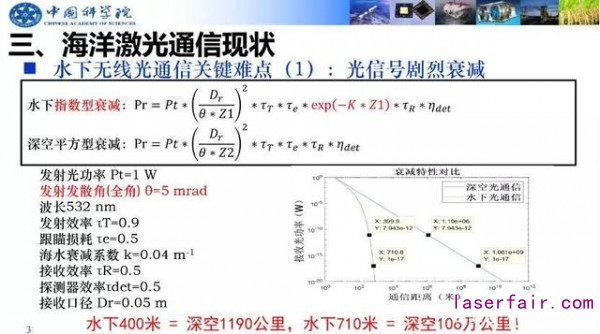 水下激光通信包括水下與水面通信、水下與空中通信,水下與太空通信。