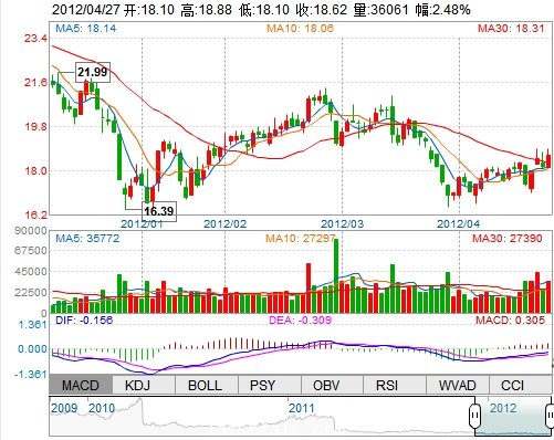 今 開: 18.10 成交量: 36060手 振 幅: 4.29% 最 高: 18.88 成交額: 6699.32萬 換手率: 1.76% 最 低: 18.10 總市值: 55.42億 市凈率: 4.56 昨 收: 18.17 流通...