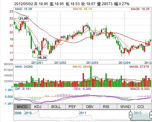 今 開: 18.95 成交量: 28573手 振 幅: 2.26% 最 高: 18.95 成交額: 5336.04萬(wàn) 換手率: 1.40% 最 低: 18.53 總市值: 55.57億 市凈率: 4.58 昨 收: 18.62 流通...