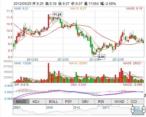 今 開: 9.25 成交量: 11363手 振 幅: 3.43% 最 高: 9.39 成交額: 1046.83萬 換手率: 0.59% 最 低: 9.07 總市值: 18.07億 市凈率: 3.75 昨 收: 9.32 流通市值...