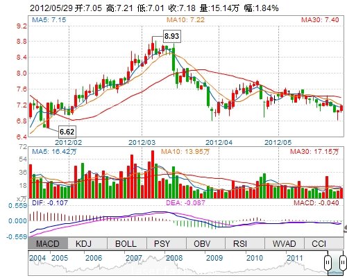 今 開: 7.05 成交量: 151424手 振 幅: 2.84% 最 高: 7.21 成交額: 10806.52萬 換手率: 1.60% 最 低: 7.01 總市值: 74.99億 市凈率: 2.52 昨 收: 7.05 流通市...
