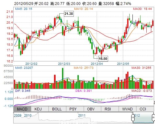 今 開: 20.02 成交量: 32057手 振 幅: 3.84% 最 高: 20.77 成交額: 6596.32萬(wàn) 換手率: 1.57% 最 低: 20.00 總市值: 61.32億 市凈率: 5.05 昨 收: 20.05 流通...