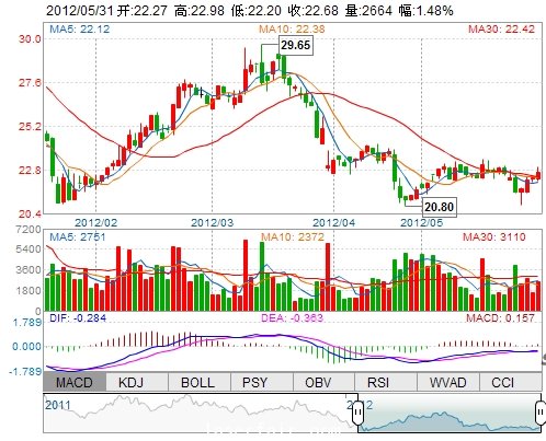 今 開: 22.27 成交量: 2664手 振 幅: 3.49% 最 高: 22.98 成交額: 600.77萬 換手率: 2.54% 最 低: 22.20 總市值: 7.94億 市凈率: 2.85 昨 收: 22.35 流通市值...