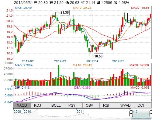 今 開: 20.80 成交量: 42505手 振 幅: 2.75% 最 高: 21.20 成交額: 8899.47萬 換手率: 2.08% 最 低: 20.63 總市值: 62.93億 市凈率: 5.18 昨 收: 20.73 流通...