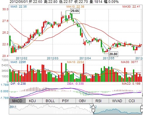 今 開: 22.60 成交量: 1814手 振 幅: 1.01% 最 高: 22.80 成交額: 411.47萬 換手率: 1.73% 最 低: 22.57 總市值: 7.95億 市凈率: 2.86 昨 收: 22.68 流通市值...
