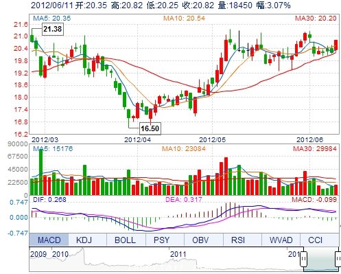 今 開: 20.35 成交量: 18449手 振 幅: 2.82% 最 高: 20.82 成交額: 3802.12萬 換手率: 0.90% 最 低: 20.25 總市值: 61.97億 市凈率: 5.10 昨 收: 20.20 流通...