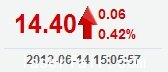 | 今 開: | 14.33 | 成交量: | 28316手 | 振 幅: | 2.09% |