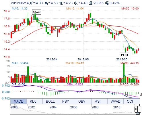 今 開: 14.33 成交量: 28316手 振 幅: 2.09% 最 高: 14.53 成交額: 4090.95萬 換手率: 0.64% 最 低: 14.23 總市值: 64.16億 市凈率: 2.43 昨 收: 14.34 流通...