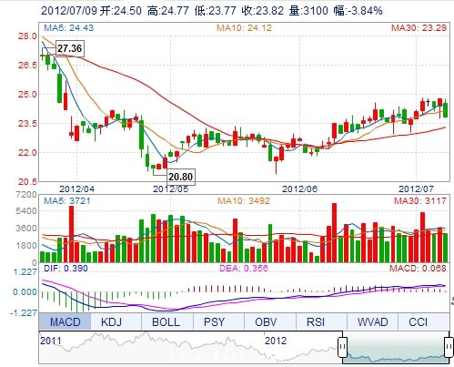 | 今 開: | 24.50 | 成交量: | 3100手 | 振 幅: | 4.04% |