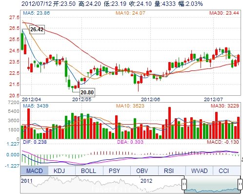 今 開(kāi): 23.50 成交量: 4333手 振 幅: 4.28% 最 高: 24.20 成交額: 1026.63萬(wàn) 換手率: 4.14% 最 低: 23.19 總市值: 8.44億 市凈率: 3.03 昨 收: 23.62 流通市...