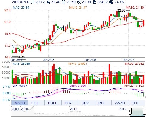 今 開: 20.72 成交量: 28492手 振 幅: 3.87% 最 高: 21.40 成交額: 5985.44萬 換手率: 1.39% 最 低: 20.60 總市值: 63.64億 市凈率: 5.24 昨 收: 20.67 流通...