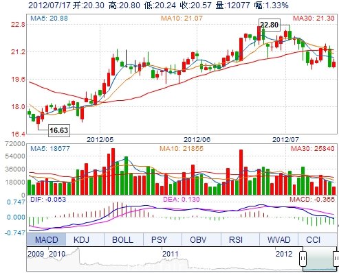 今 開: 20.30 成交量: 12077手 振 幅: 2.76% 最 高: 20.80 成交額: 2476.65萬 換手率: 0.59% 最 低: 20.24 總市值: 61.23億 市凈率: 5.04 昨 收: 20.30 流通...
