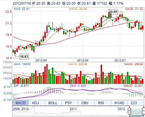 今 開(kāi): 20.35 成交量: 17142手 振 幅: 4.13% 最 高: 20.85 成交額: 3511.69萬(wàn) 換手率: 0.84% 最 低: 20.00 總市值: 61.94億 市凈率: 5.10 昨 收: 20.57 流通...