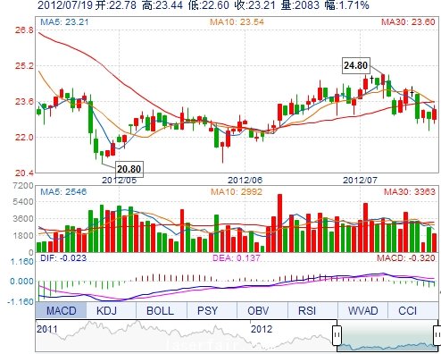 開(kāi): 22.78 成交量: 2082手 振 幅: 3.68% 最 高: 23.44 成交額: 482.17萬(wàn) 換手率: 1.99% 最 低: 22.60 總市值: 8.12億 市凈率: 2.92 昨 收: 22.82 流通市值: ...