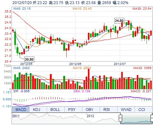 今 開: 23.22 成交量: 2658手 振 幅: 2.67% 最 高: 23.75 成交額: 625.69萬 換手率: 2.54% 最 低: 23.13 總市值: 8.29億 市凈率: 2.98 昨 收: 23.21 流通市值...