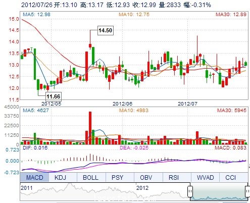 今 開: 13.10 成交量: 2832手 振 幅: 1.84% 最 高: 13.17 成交額: 369.10萬 換手率: 0.85% 最 低: 12.93 總市值: 8.70億 市凈率: 2.80 昨 收: 13.03 流通市值...