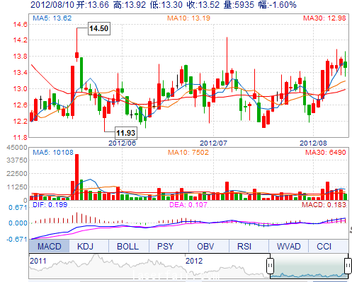 | 最 高: | 13.92 | 成交額: | 811.34萬(wàn) | 換手率: | 1.78% |
