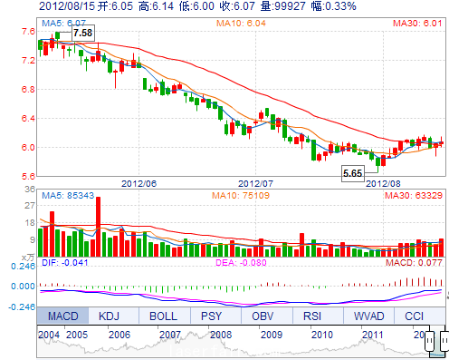 今 開(kāi): 6.05 成交量: 99927手 振 幅: 2.31%