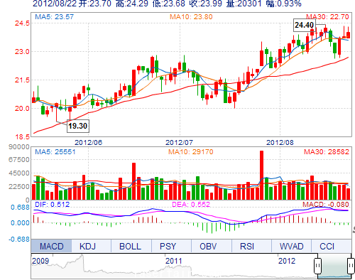 今 開: 23.70 成交量: 20301手 振 幅: 2.57% 最 高: 24.29 成交額: 4877.90萬 換手率: 1.11% 最 低: 23.68 總市值: 71.41億 市凈率: 5.62 昨 收: 23.77 流通...