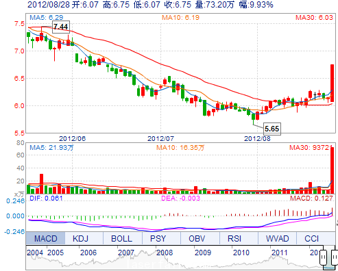 最 高: 6.75 成交額: 48695.84萬 換手率: 7.74%