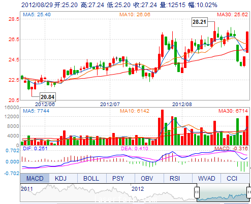 最 高: 27.24 成交額: 3356.16萬 換手率: 11.95%