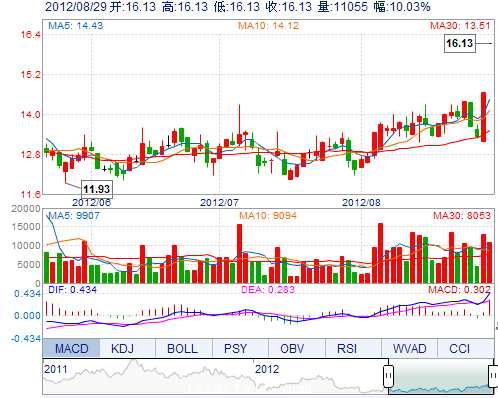 今 開: 16.13 成交量: 11055手 振 幅: 0.00%