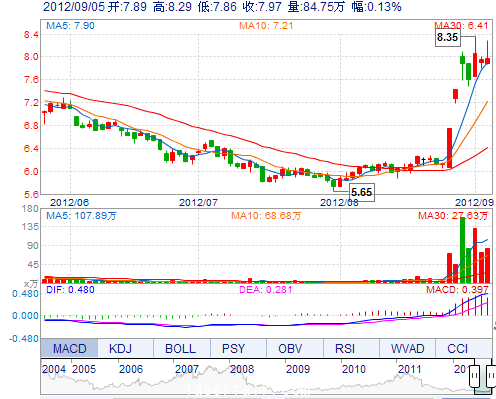 今 開: 7.89 成交量: 847539手 振 幅: 5.40%