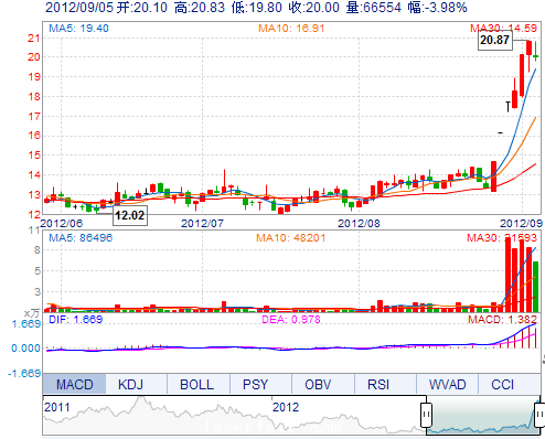 最 高: 20.83 成交額: 13449.34萬(wàn) 換手率: 19.99%
