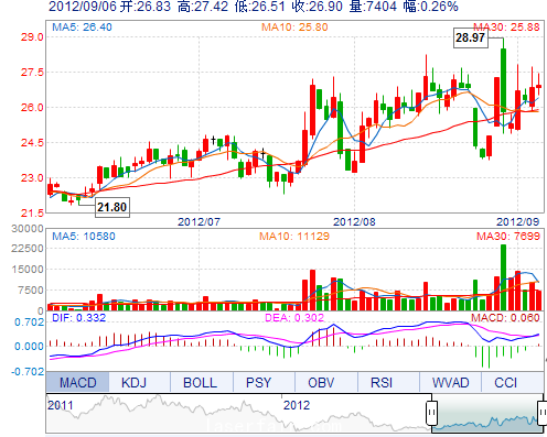 今 開(kāi): 26.83 成交量: 7403手 振 幅: 3.39%