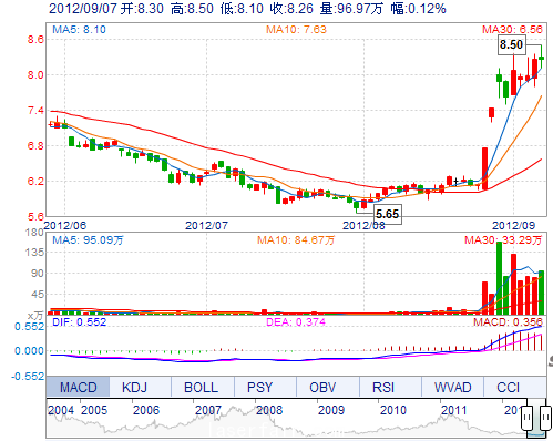 最 高: 8.50 成交額: 80251.25萬 換手率: 10.25%