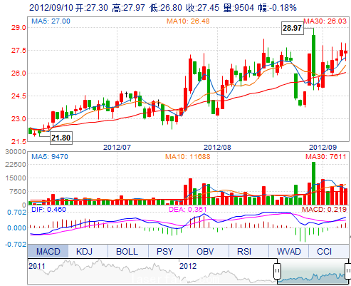 最 高: 27.97 成交額: 2599.19萬 換手率: 9.08%