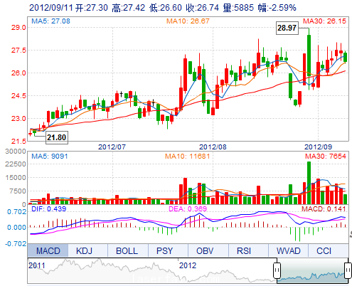 昨 收: 27.45 流通市值: 2.80億 市盈率TTM: 51.00