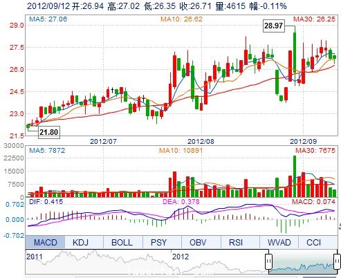 昨 收: 26.74 流通市值: 2.80億 市盈率TTM 50.95