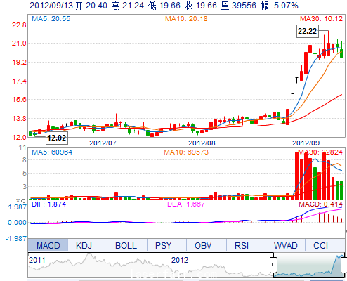 今 開: 20.40 成交量: 39556手 振 幅: 7.63% 最 高: 21.24 成交額: 8071.24萬 換手率: 11.88% 最 低: 19.66 總市值: 13.17億 市凈率: 4.23 昨 收: 20.71 流通...
